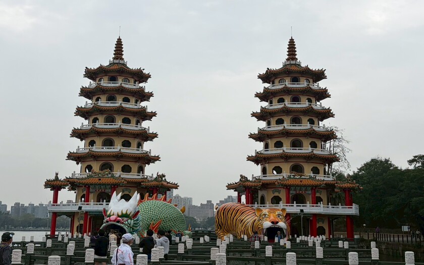 第一站來到高雄著名景點 蓮池潭。蓮池潭舊稱「蓮花潭」,潭面約 42 公頃,水源來自高屏溪。清領時期因湖畔遍植荷花,名列鳳山八景之一「泮水荷香」,而今日則以半屏山與龍虎塔倒映湖面的 「蓮潭夕照」聞名。
