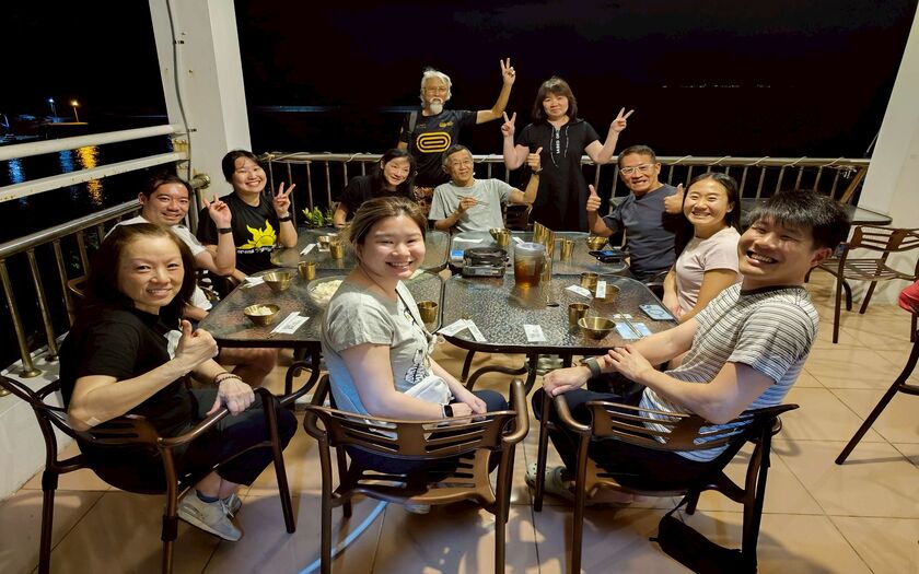 夜幕降臨,晚餐安排於阮家茶坊天空餐廳。燈火點亮,小琉球與大鵬灣的夜景在遠方閃爍,海風輕拂之中,一道道佳餚上桌。從白天的踩踏,到夜晚的靜謐,形成鮮明對比,也讓這一天更顯完整。