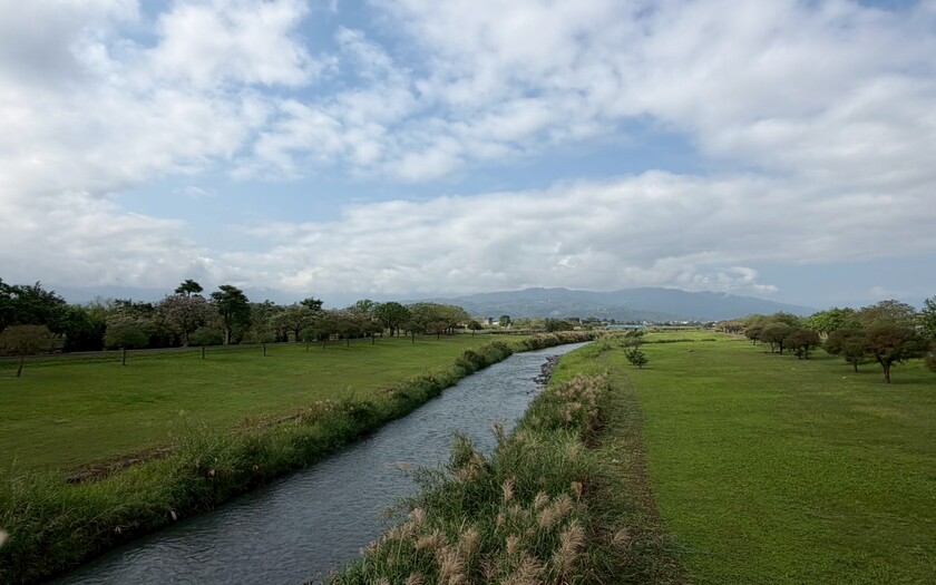 第一站來到安農溪生態公園。分洪堰將溪流一分為二,水流在此展開成開闊河道,綠地與步道沿岸鋪展,五彩小橋點綴其中。騎行於此,節奏自然放慢,彷彿進入另一種更柔和的旅行狀態。