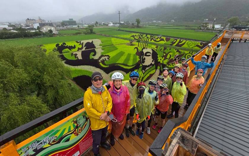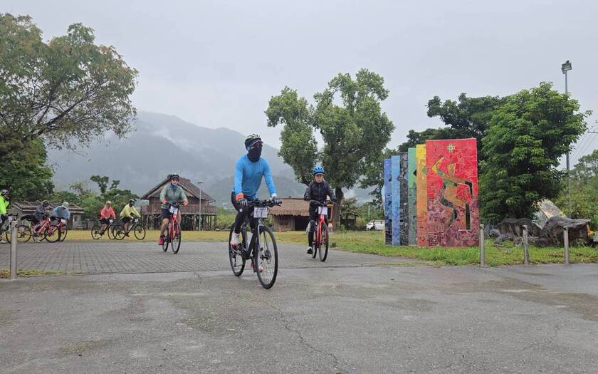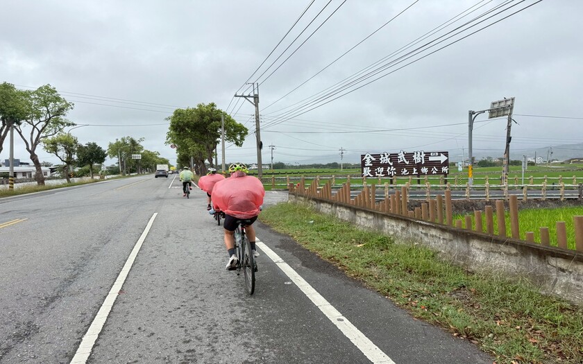 午後持續推進,天氣並未轉穩,雨勢時有時無,伴隨著騎行一路向北。跨越池上大橋後進入稻田與穀倉交織的景色,池上車站前的開闊視野依舊迷人,但車隊的節奏,更多是與雨水與泥濘共存。