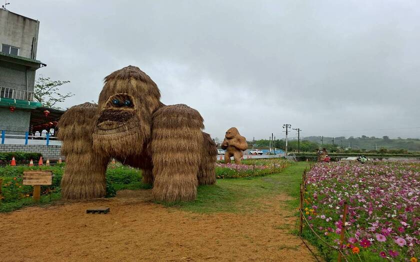 接著來到富里花海與稻草藝術園區,田野之間的大型裝置藝術依然吸睛,只是在細雨之中,多了一份不同於晴天的靜謐氛圍。