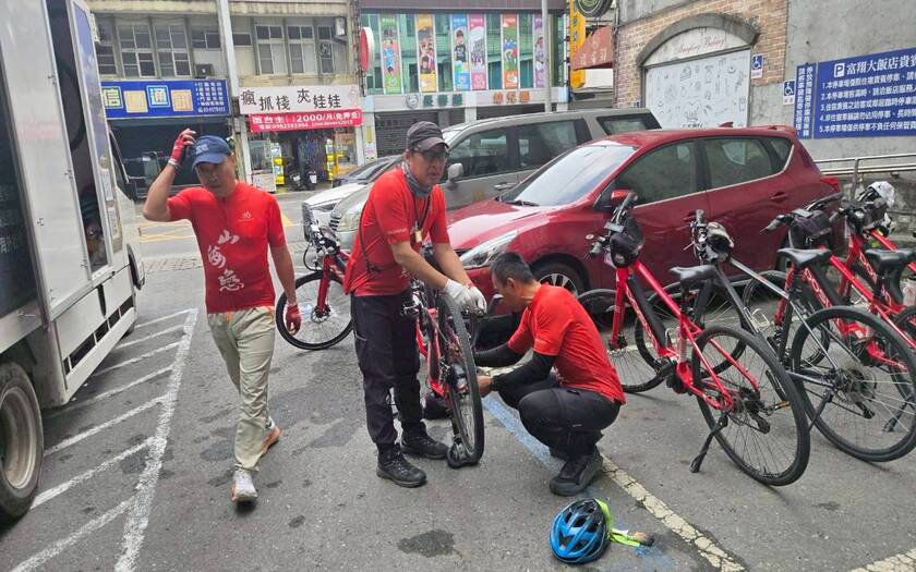 再往前騎,抵達木柵動物園站,部分團員在此提前道別。握手、擁抱、再三叮嚀保重,短短幾句話,卻說不完九天累積的情誼。其餘夥伴繼續踩踏,最後一段回程,節奏反而變得從容。熟悉的城市街景逐漸出現,車流、人聲、生活的節奏慢慢回到眼前。