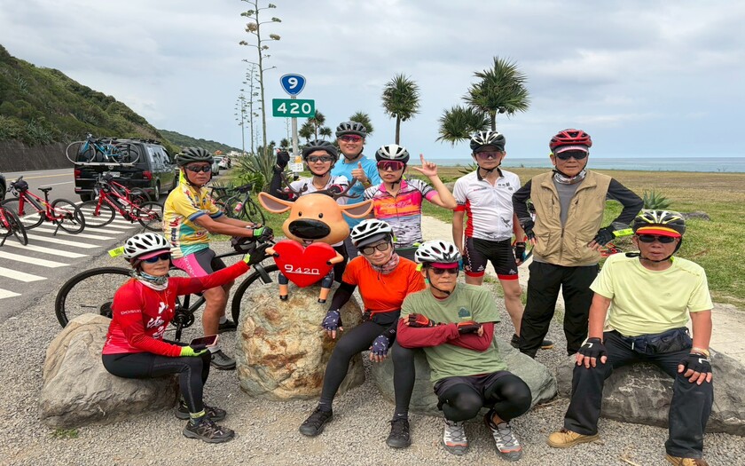 隨後前往大武之心南迴驛稍作休整,換回騎行裝備。接著來到台9線420K「台九遇到愛」打卡點拍照留念,為今日增添一抹輕鬆趣味。