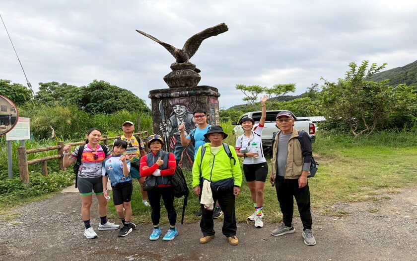 8點左右,在地社區導覽員到場,發放獵人餐,簡單卻充滿山海氣息。隨著解說,一行人從部落出發,沿著古道入口前進。正式踏入步道前的合影,為這段旅程留下重要的起點記錄。