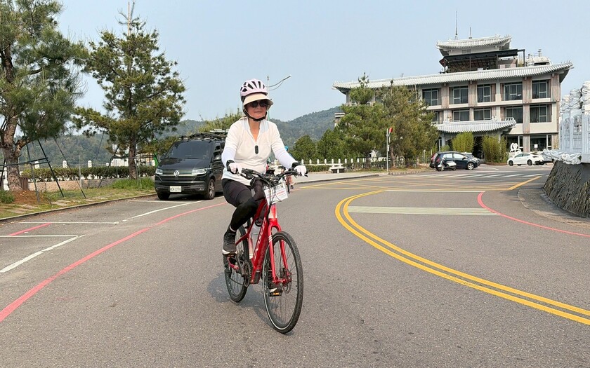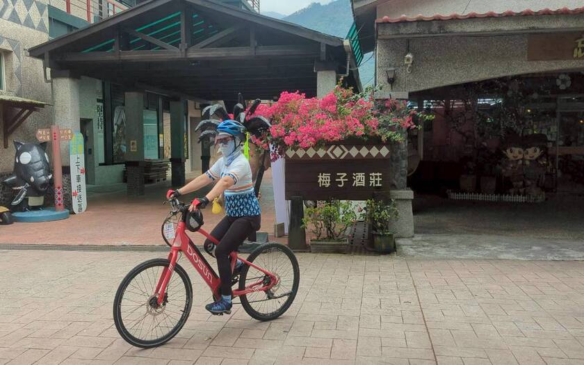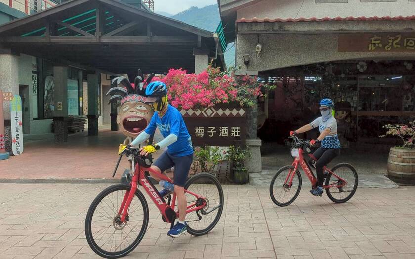 第一段爬坡很快讓身體進入狀態。汗水沿著臉頰滑落,呼吸逐漸加深,直到抵達慚愧祖師廟,才終於有了停下來的理由。廟埕前,葉教練講起祖師的故事——以「慚愧」自省,以謙卑為修行。這份向內的提醒,在剛經歷爬坡的我們心中格外有重量。騎行,有時也是一種修行。