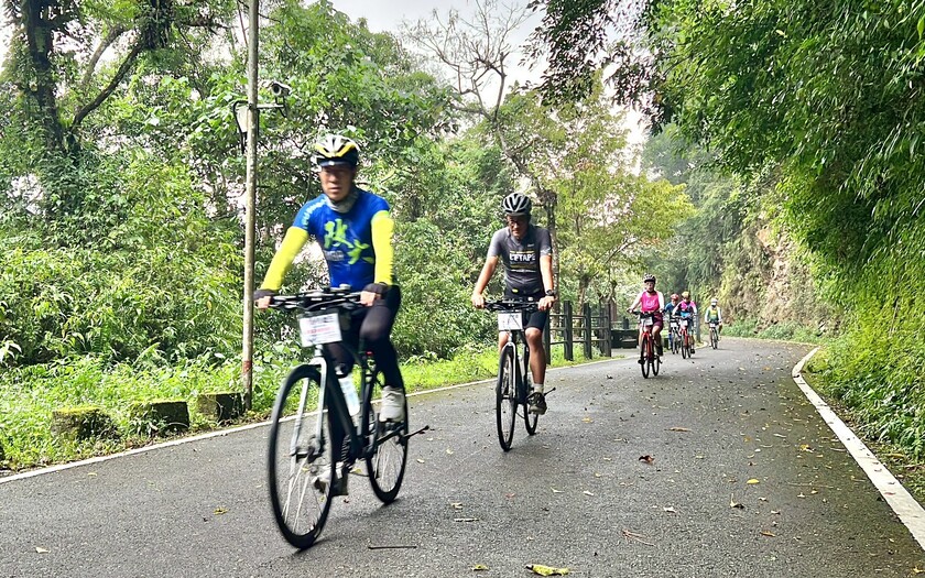 專車接駁至鯉魚潭,湖光靜靜展開在群山之間。整備、用餐,氣氛逐漸暖開,大家從旅途的移動狀態,轉換成準備騎行的節奏。13:30,細雨中出發,環潭騎行正式開始。