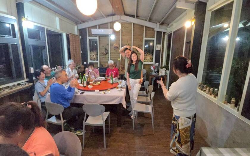 夜晚再度前往馬太鞍濕地,在欣綠農園享用部落料理。餐桌上,是土地的味道,也是人與人之間最直接的交流。笑聲與談話聲交織,讓這一天在溫暖中落幕。