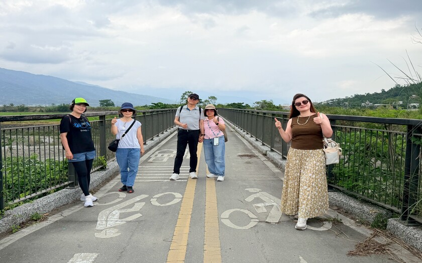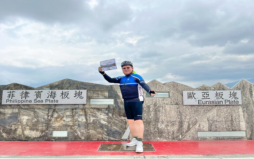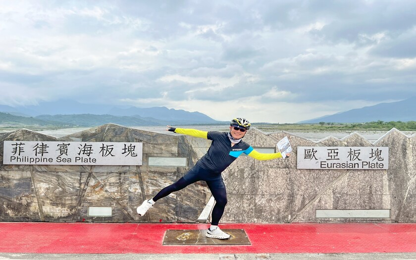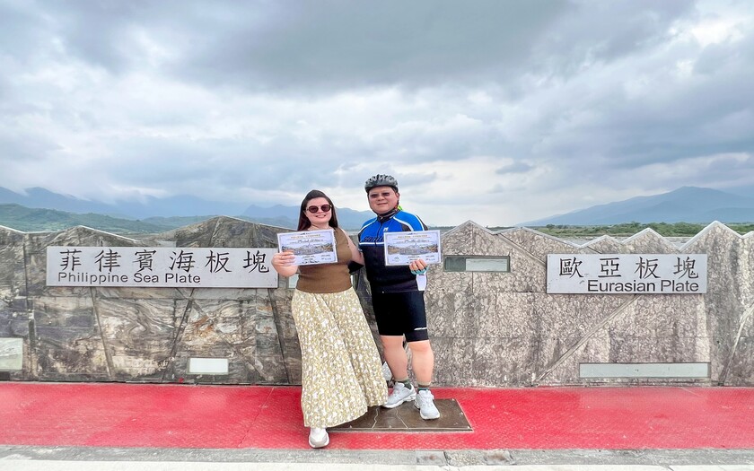接著轉入玉富自行車道,來到舊鐵道橋上。腳下這一段,看似平凡,卻是世界級的地理奇點——歐亞大陸板塊與菲律賓海板塊的交界處。全世界僅有少數地方能在陸地上跨越板塊,而此刻,夥伴們用雙輪完成了這項壯舉。現場頒發「跨越台灣奇點・世界騎跡挑戰證」,這不只是紀念,更是一段專屬於這趟旅程的榮耀。