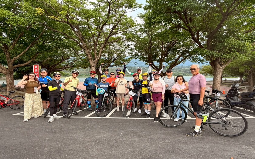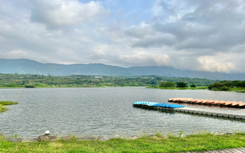 再往前騎抵池上大坡池,湖面平靜如鏡,倒映著藍天與遠山。這裡的水,滋養著整片縱谷,也孕育出聞名的池上米。