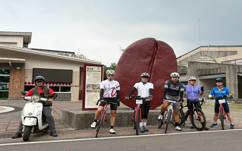 過高美大橋後,節奏突然變得輕快起來。轉進高樹國小(童玩主題校園),眼前不再只是公路與坡度,而是一整片童趣世界。地面畫著跳格子,彩色童玩裝置點綴校園,單車隨意一靠,畫面竟毫無違和。Remon忍不住下場「開跳」,笑聲瞬間在隊伍中擴散——騎行之外,還能找回童年,這一站,療癒而剛好。
