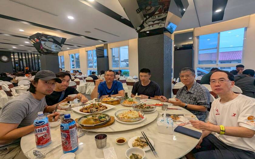 午餐在老字號牛肉麵店解決。老闆娘看到一身車衣,主動加大份量,湯多、麵多、關心也多。在高溫之中,這碗熱湯不只是補給,更像一份被理解的溫暖。