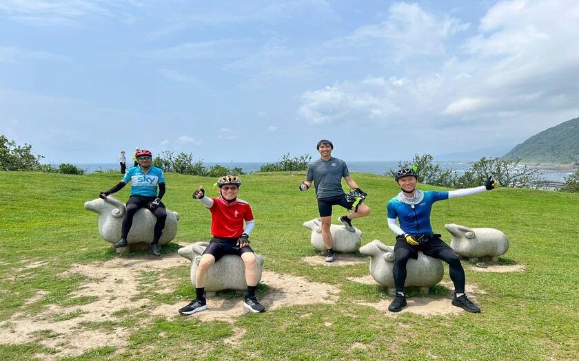 從福隆出發不久,車隊轉入舊草嶺隧道。當炙熱的東北角陽光瞬間被隧道吞沒,溫度驟降,彷彿走進天然冷氣房。微涼的空氣與回音交織,腳步與踏頻都變得輕快起來,這段騎行不只是路線,更像是一種儀式,正式進入單車旅程的節奏。