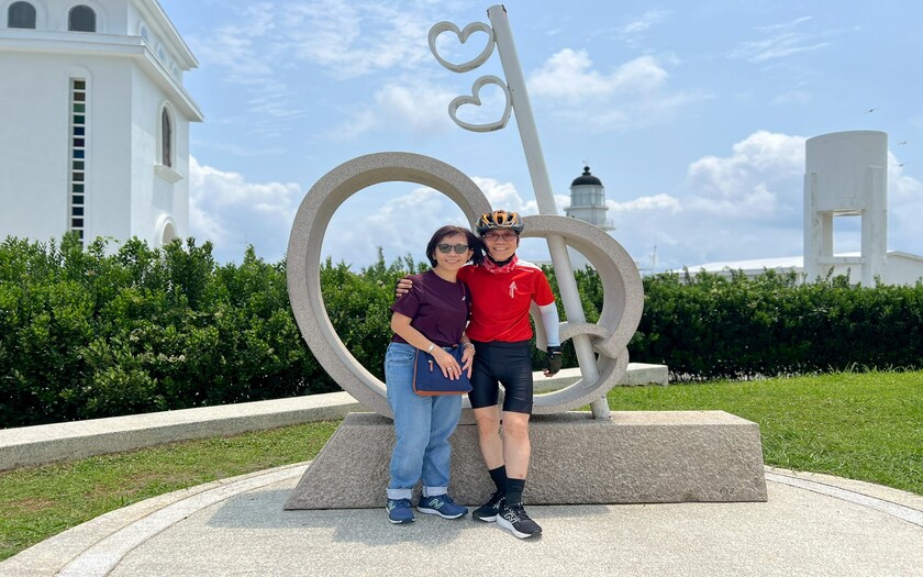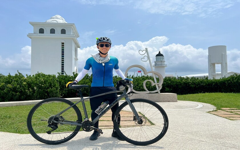 出了隧道,迎面而來的是今天第一個考驗——三貂角燈塔的爬升。短短150公尺的高度,卻毫不客氣。對剛接觸單車不久的夥伴來說,每一踩都是挑戰;有人騎一般車,有人第一次嘗試電輔車,緊張與期待交錯。但沒有退縮,沒有放棄,一步一步,大家終於站上燈塔前的平台。眼前海天一線,白色燈塔在藍天映襯下格外耀眼,那一刻的成就感,比任何距離都更深刻。