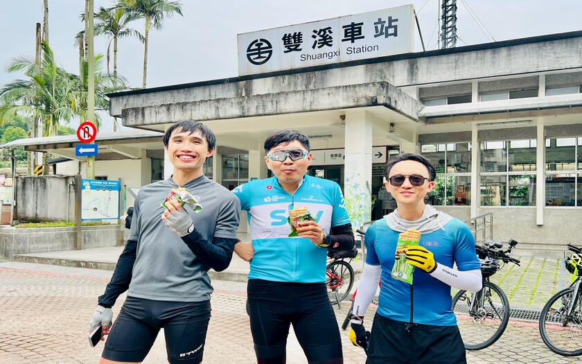 在貢寮車站稍作停留,聽著地名的由來與歷史故事,讓這段旅程多了些文化層次。接著繼續前進,午後氣溫逐漸升高,大家開始想念冰品的清涼。車隊轉進雙溪車站,雖然原本期待的冰店公休,但一支冰淇淋,依然為騎行帶來片刻滿足。