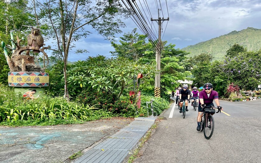 真正的考驗在山美之後——通往石棹的 22 公里路段,爬升高達千餘公尺,等同茶山到山美 17 公里爬升 350 公尺的三倍之多。幸好團隊依照單車、電輔車的特性靈活調整休息點,全員齊心協力,終於在中午 12 點 15 分抵達午餐地點 林園茶香美食餐廳。這裡的佳餚曾獲美食競賽最佳創意獎,菜色清爽又別具巧思,大家一邊品嚐、一邊交換彼此的笑語,辛苦付出換來滿滿的愉悅。
