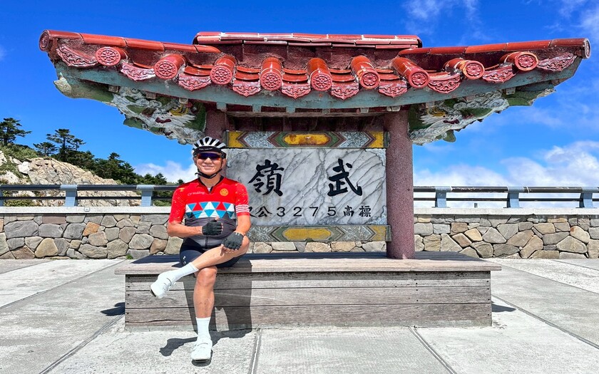 12:10,全隊抵達海拔 3,275 公尺的武嶺。這是台灣公路的最高點,也是單車人心中的殿堂。汗水與意志在此凝結成榮耀的勳章。當武嶺獎章掛上胸前,教練也端出一份驚喜——為壽星郭秋梅與馬志朋準備的生日蛋糕。群山環抱、雲海作伴,在這樣的高度唱生日歌,笑聲與感動交織成最獨特的回憶。
