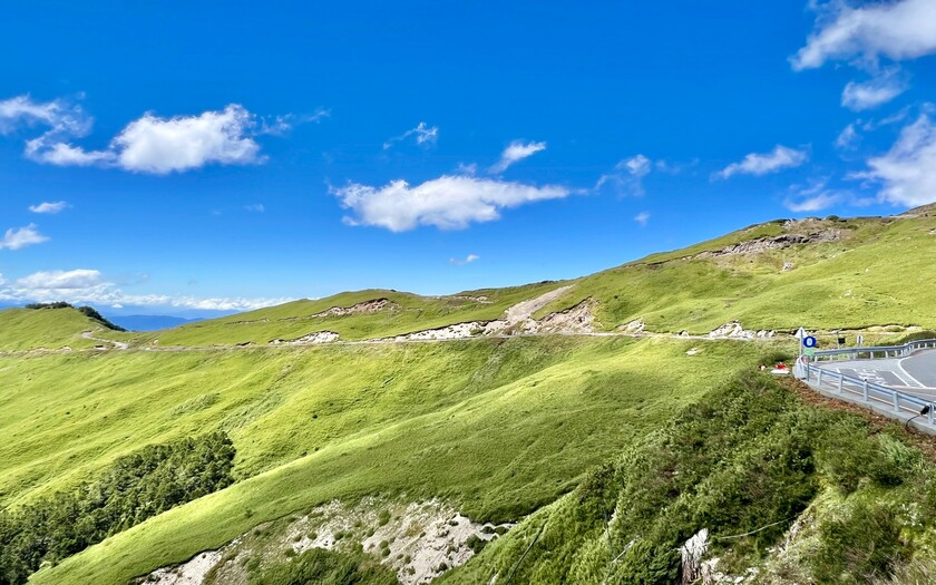 午餐安排在松雪樓,這座建於1964年、完工於1966年的建築,最初是蔣中正巡視中橫公路時的行館,如今成為登山與遊客的休憩據點。隨後我們移動到「3160咖啡」,一杯熱飲在全台最高咖啡廳端上,暖的不只是身子,更是那顆剛剛跨越極限的心。午後下坡,經過「小風口」,海拔2,995公尺,因大甲溪與立霧溪兩股氣流交會,常年風勢強勁、雲霧翻湧,山坡上的冷杉、鐵杉與箭竹林因此獲得充沛水氣,呈現蒼翠風貌。再一路經過海拔 3000 公尺地標、大禹嶺——這條橫貫中央山脈的鞍口,令人心生敬畏。最後抵達台8線 88公里處,這個「8」的吉祥寓意吸引車友們紛紛合影留念。