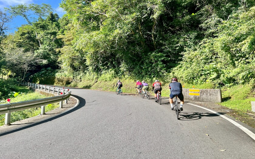 午後持續挑戰北橫蜿蜒,榮華大壩的景觀已隨泥沙淤積不復昔日風采,只能放慢腳步,從車上瞥見一眼往昔的印記。隨著海拔起伏,抵達復興羅浮,雙橋美景吸引大家停下腳步:粉色的復興橋原為人行吊橋,如今專屬行人與單車,而大紅色的羅浮橋則在青山綠水間無比張揚。午後還特地加碼至角板山,嚐上一碗沁涼的水蜜桃冰,為長途補上最甜美的獎勵。
