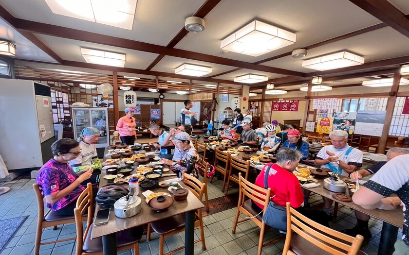 雖然昨天挑戰了120公里的長程,今天早晨大家依舊精神奕奕。享用完早餐後,我們再次跨上鐵馬。一路藍天白雲,陽光柔和,瀨戶內海的風拂過臉龐,空氣中帶著鹹香與秋意。
