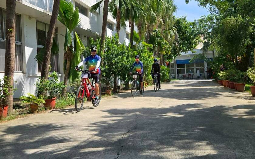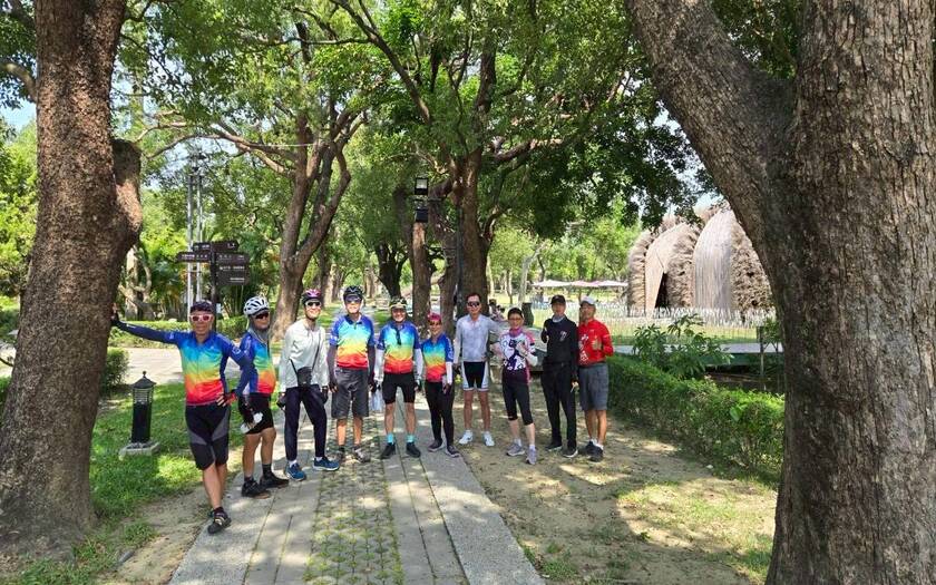 回到林鳳營後,10:20 開始今日正式騎行。第一站來到 麻豆總爺藝文中心。這裡原為日本明治製糖株式會社的「總爺工廠」,至今仍保留紅磚煙囪與廠舍遺構。百年糖業的痕跡在綠樹與藝術展間交織,糖廠轉型為藝文基地,也轉化成時間的故事。