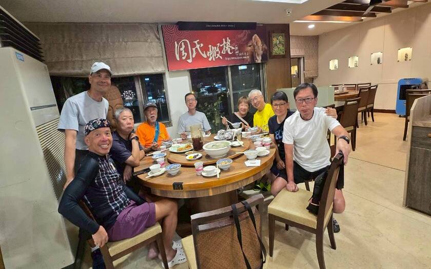 傍晚 16:50,車隊平安抵達 台南榮美金鬱金香酒店。今晚的重頭戲,是在地名店「周氏蝦捲」享用國宴級晚餐。鮮蝦炸得酥脆香甜,搭配蚵仔酥、魚丸湯、虱目魚粥等台南經典美食。香港與新加坡車友邊吃邊笑,直呼「這趟真是美景、美食雙滿分!」
