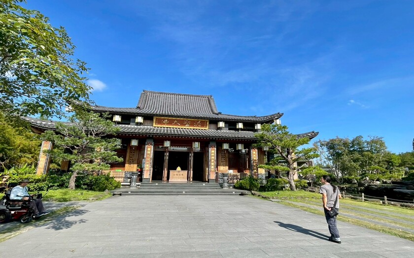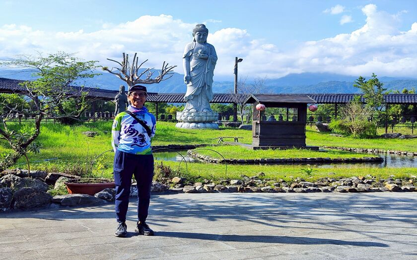 午後行程轉往 北后寺。寺廟隱身在蜿蜒的鄉間小路裡,遠遠就能望見一尊五公尺高的泥塑大佛安然矗立,已被登錄為宜蘭縣文化資產。寺院外觀仿唐式建築,屋脊莊嚴、庭園靜謐,卻又融入日式禪風的簡約。石燈籠立於青苔之間,小池塘裡映著天空與佛影。微風帶著鐘聲迴盪——那份寧靜與莊嚴,讓人心生敬意。