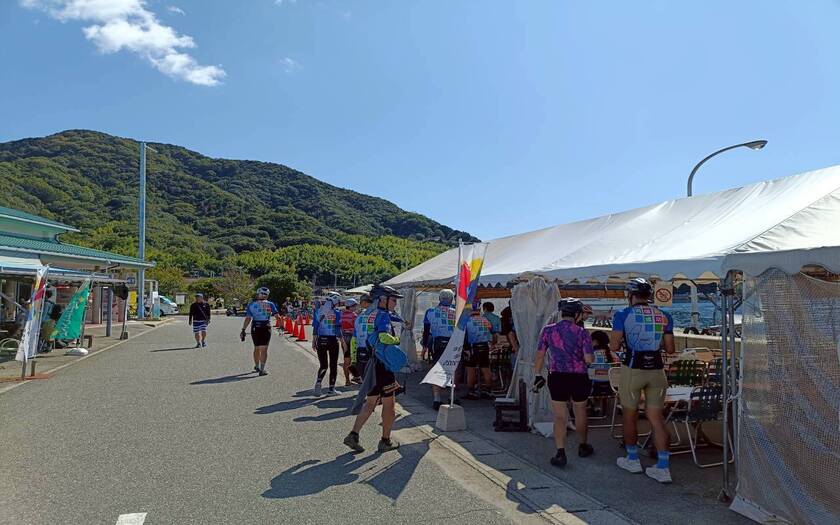 下午 3 點半,車隊抵達 多多羅公園/Cyclist’s Sanctuary(單車聖地碑)。大家依序牽車進場,在海風與掌聲中完成最後一段踩踏。工作人員為每位完成者頒發 環四國紀念環,笑聲、歡呼與浪聲交織成最動人的樂章。這一刻,不只是里程的終點,更是堅持與夢想的印記。