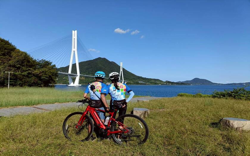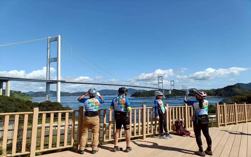 ○生口橋:純白鋼索與藍天交織,優雅的曲線宛如音符,被譽為「日本最詩意的自行車路段」。
