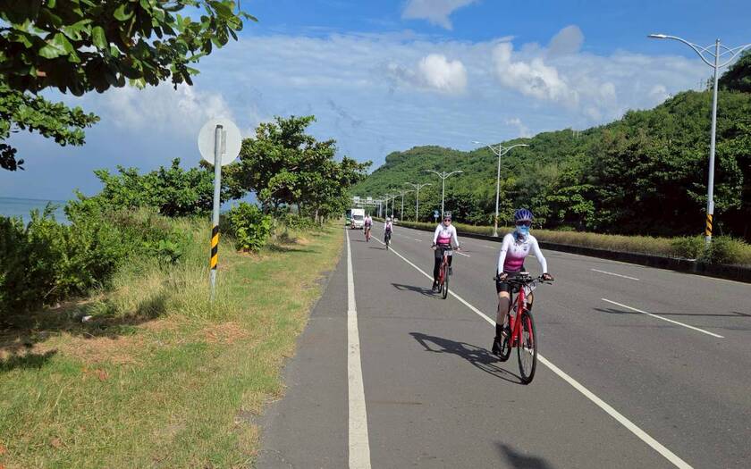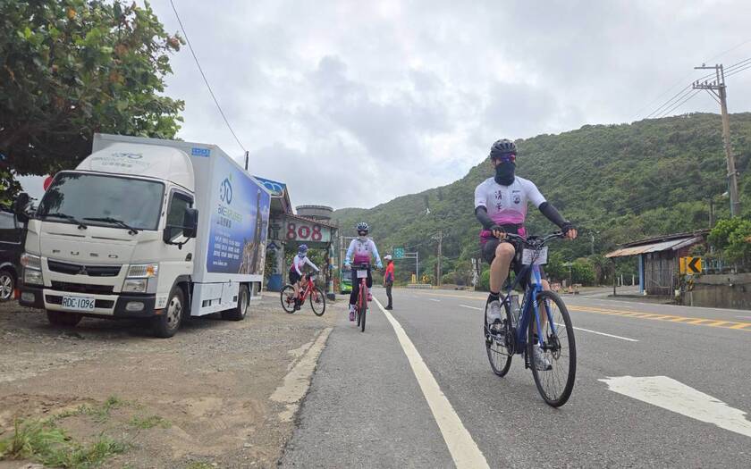 10:20,全員順利登上壽卡。這裡是屏東與台東的分界,更是南迴公路的制高點。迎面吹來的風裡,夾雜著一絲成就的喜悅。清大陪騎團與環島主團在此重逢,彼此擊掌、合影留念,笑聲回蕩山谷。