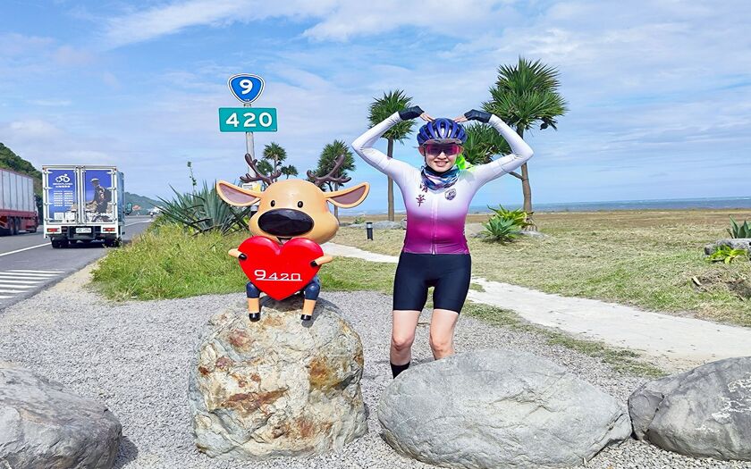 車隊接著沿台9線前進,在 420K「就是愛你(9420)」打卡點與可愛小鹿合影,笑容在鏡頭中凝結成今日的快門聲。