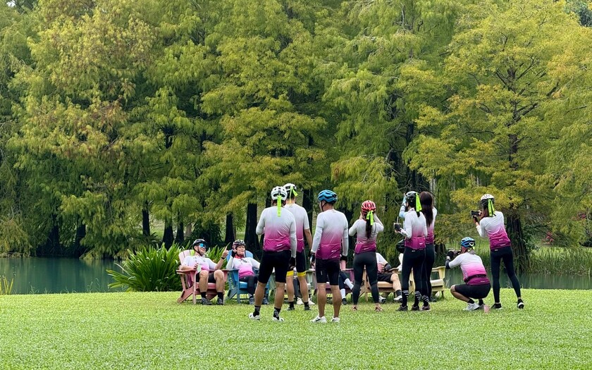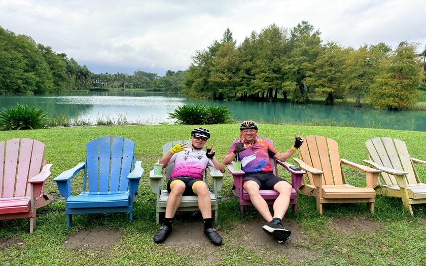 不久,車隊加碼前往壽豐鄉著名的「雲山水夢幻湖」。湖面映著藍天與遠山,倒影如畫。這片位於縱谷中央的私人園區,佔地約24公頃,湖泊面積約4公頃,原為人工開鑿。靜謐水面間,人人駐足,讚嘆自然與人文的巧妙共生。這一刻,大家深刻體會單車旅遊的意義——不只是里程,更是與土地的連結。