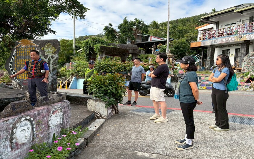 晨曦自太平洋升起,光線在雲層間灑下金粉,台東的空氣帶著一股清爽與鹹香。今天是旅程的最後一天,大家臉上多了一份從容與微笑。早上八點,全隊前往【新興撒布優部落】——這座位於新興村的排灣族聚落,被翠綠山林環抱,鳥鳴與蟬聲交織成一首自然樂章。入口處的雕像遙望太平洋,象徵族人「共榮共生」的精神。部落導覽員以深情的語調,帶領我們穿梭在石雕、木刻、傳統屋舍之間,訴說著族群遷徙、信仰與土地的故事,那份與自然共存的智慧,令人動容。
