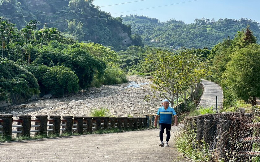 下午我們騎抵位於 149 線 14K 的桶頭吊橋。1971 年首建、2005 年再由行善團修繕,如今依舊靜靜跨過清水溪,是連結桶頭與小旗巷的重要通道。陽光斜照在木板上,腳步踩起來吱呀作響,讓人彷彿走入時光縫隙。