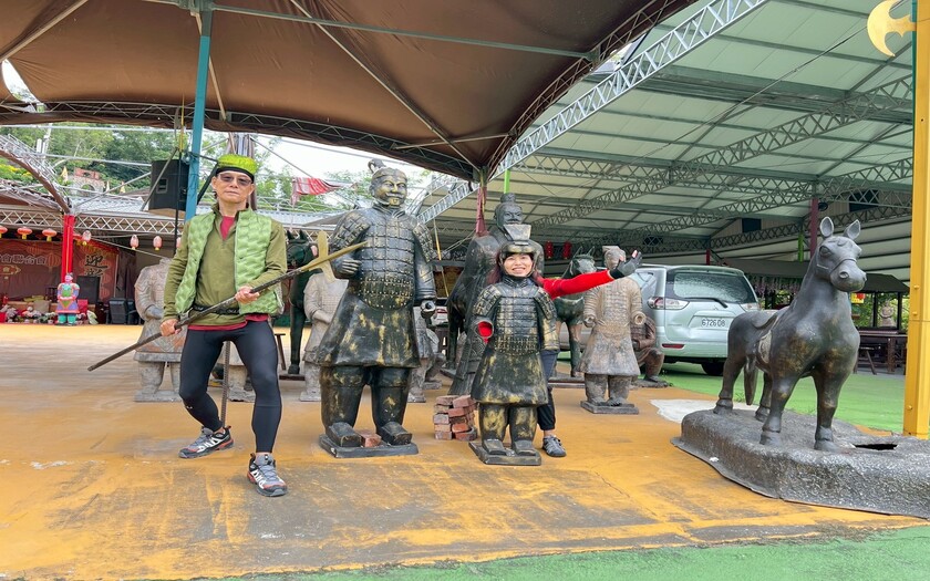 隨後車隊前往「白河萬里長城」。園區是以台灣匠師的手藝重現山海關、兵馬俑、開封府與各式木造建築。步道蜿蜒,一角像古戰場,一角是古城巷弄;轉個彎還有台灣歌仔戲與地方民俗意象穿插其中。這裡既有中國古風的壯闊,也有台灣本土的趣味,像穿越在兩種文化的交界,笑著回味小時候看戲的記憶。