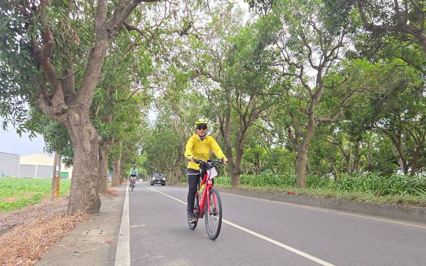 最後一段行程,是所有人最期待的「太康綠色隧道」。770 棵巨大芒果樹像兩排溫柔的守護者,枝葉彼此交握,形成天然走廊。陽光從葉隙灑下斑斕光影,腳下路面被光點鋪成星河。風在樹梢上流動,車輪在綠蔭下輕聲滑行——這段路像是為旅程量身打造的收尾詩篇。