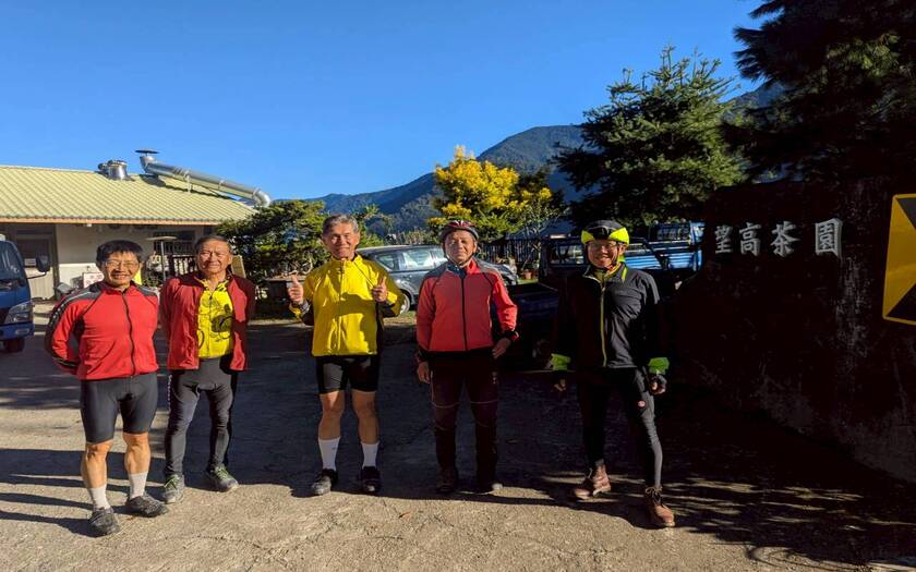 玉山守望的一日|塔塔加・夫妻樹・鹿林神木・阿里山早晨從東埔的沙里仙溫泉渡假村出發,天氣清朗微涼,隊伍依計畫兵分兩路:一般車搭車至台21線124K附近開始起騎,電輔車隊則由飯店出發,沿途經過日月雙橋、望高茶園,一路朝玉山方向前進。今日原預期在 132K 需配合整點放行,所幸工程臨時取消,大家瞬間卸下時間壓力,能真正將目光放回眼前壯闊的山景。