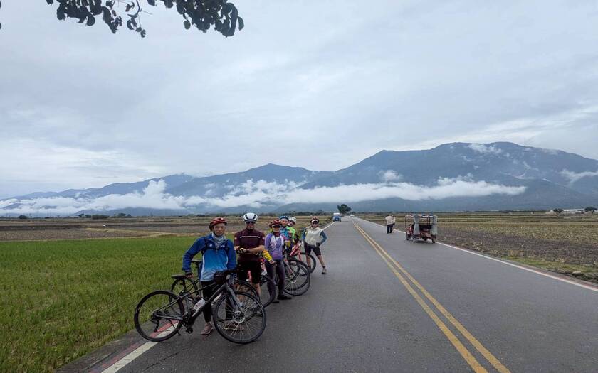 接著來到 伯朗大道、金城武樹、天堂路。沒有電線桿的筆直道路,翠綠稻田一路鋪展到天際,遠山披著山嵐,如披風、如圍巾;雲影變幻,藍天白雲幻化如蒼狗、似神佛。快門聲此起彼落,幾乎沒有人捨得催促出發—能騎進這樣的風景裡,怎能不心生感謝。