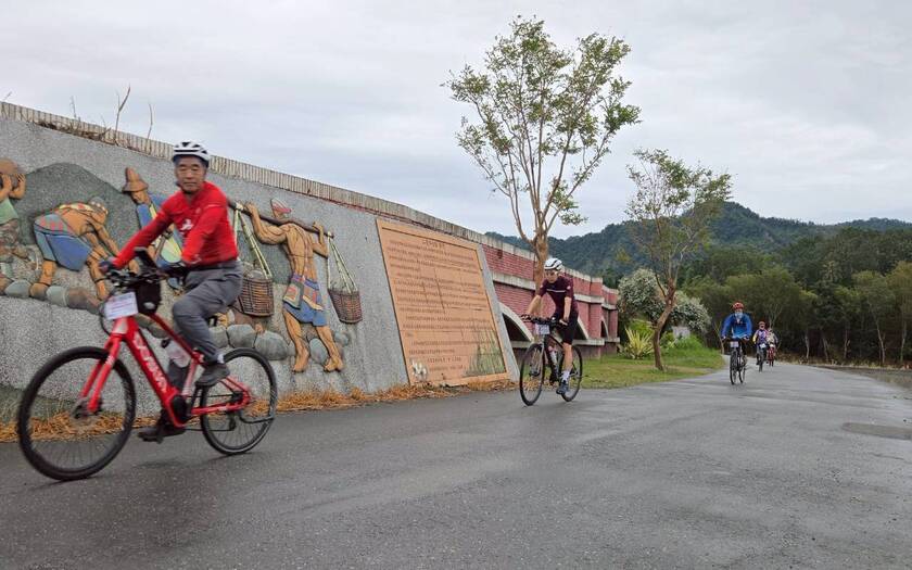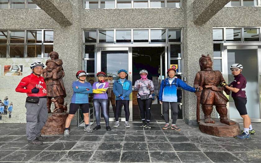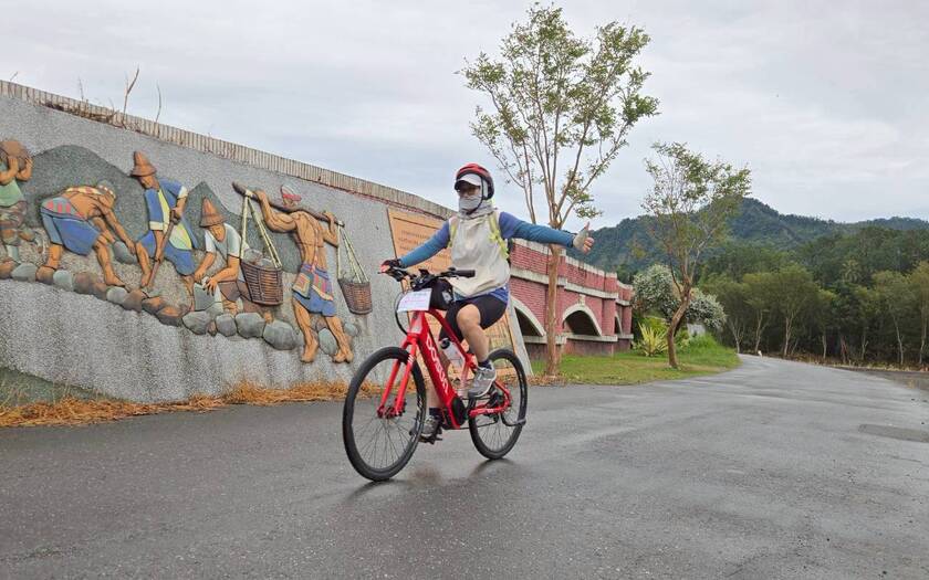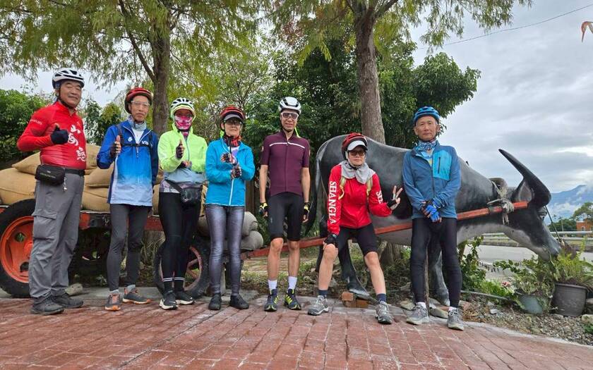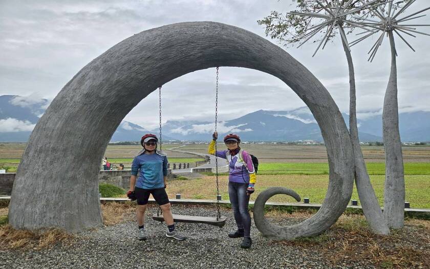 一出發便騎上 197 縣道縱谷大地藝術線。這條縣道不是單純的交通路徑,而是一座延展在大地上的美術館。藝術家將創作深植土地,裝置作品如同縣道的靈魂,靜靜訴說縱谷的故事。在「阿嬤的叮嚀」前,領隊分享了關於保護癩蛤蟆的生態故事,藝術不再只是觀看,而是理解土地與生命的方式。