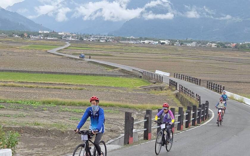 10:40,日光穿透穀倉般的池上車站,光影灑落在整齊排列的單車上,也替這趟「斯卡羅卑南道」的旅程揭開序幕。11:10,全員整備完成出發。天氣微陰,細雨若有似無,不影響踩踏,也為縱谷添上一層柔和濾鏡,讓一切顯得更安靜、更適合慢慢看。