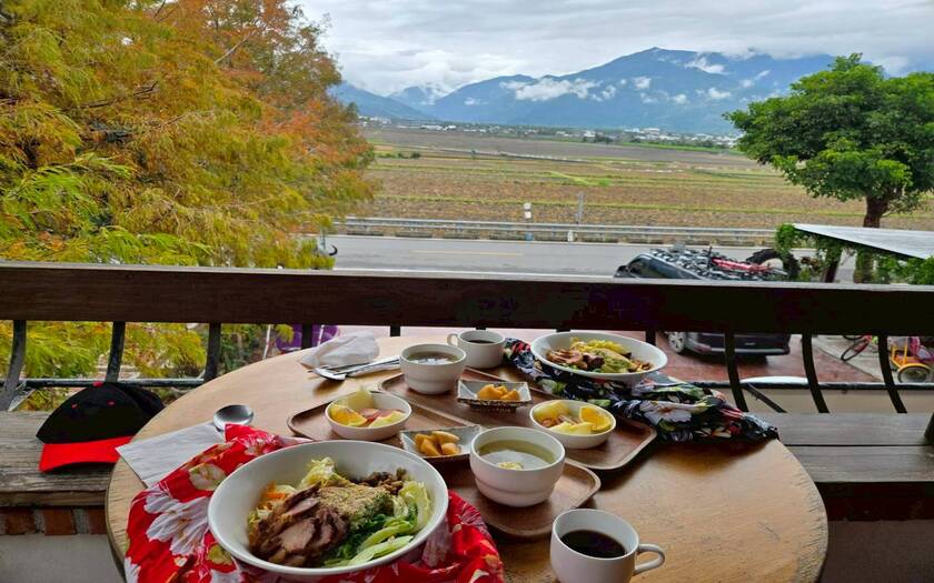 看著彷彿觸手可及的 都蘭山,隊伍緩緩騎上鹿野高地,在龍田村落腳。16:40 抵達 鹿野金暉大飯店。晚餐特別安排至 春耕源香草餐廳,陶板火鍋需親手爆香洋蔥、拌炒肉片再加高湯,香氣在桌邊慢慢堆疊,份量十足、滋味驚豔,為第一天畫下溫暖而滿足的句點。今日總騎乘約 50 公里。