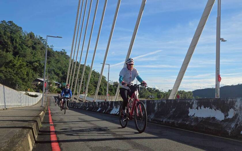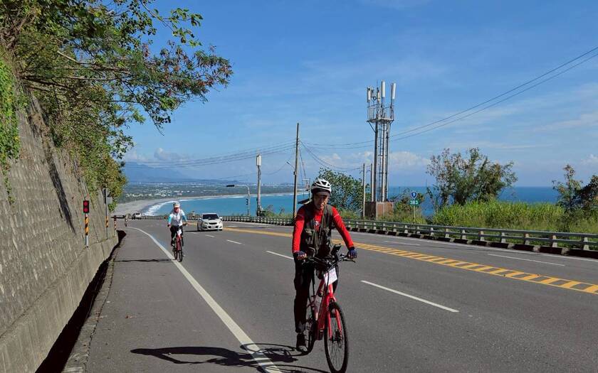 14:00 結束部落行程,起風的午後,我們沿著太平洋海岸南下。接下來的 華園坡 與 金崙坡,是北往南騎最讓人印象深刻的挑戰:坡短卻陡。電輔車在電力加持下穩定前行,一般車只能靠體力與毅力硬撐,看著電輔車越來越遠,除了苦笑,只能咬牙往上。但沒有人放棄,這正是單車最迷人的地方。