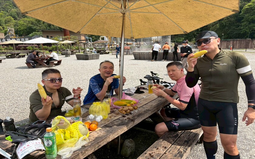中午,加碼前往清水地熱區。熱氣從地表蒸騰而起,大家親手煮起溫泉蛋、玉米與地瓜,這樣的「野炊式午餐」,讓海外車友充滿新鮮感,也吃得格外滿足。食物的香氣與地熱的蒸氣交織,成為今天最有溫度的一段記憶。