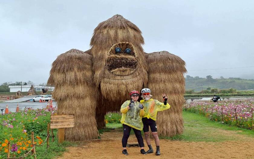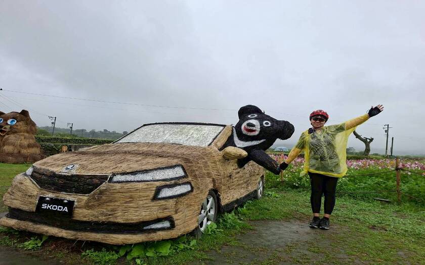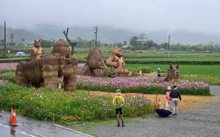 接著來到富里花海與稻草藝術園區,田野之間的大型裝置藝術依然吸睛,只是在細雨之中,多了一份不同於晴天的靜謐氛圍。