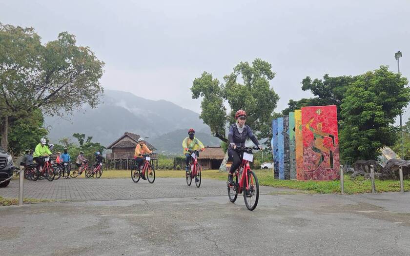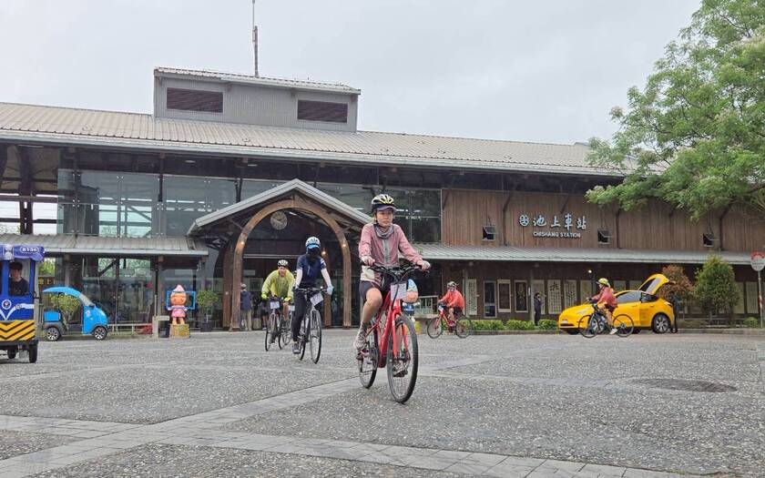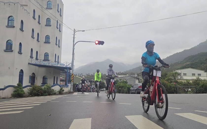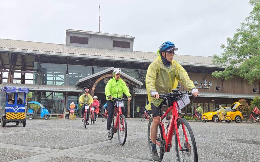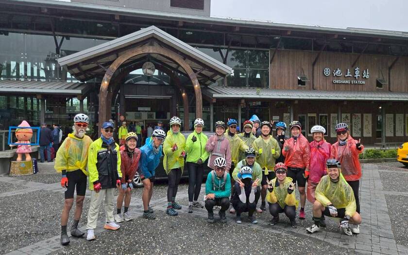 午後持續推進,天氣並未轉穩,雨勢時有時無,伴隨著騎行一路向北。跨越池上大橋後進入稻田與穀倉交織的景色,池上車站前的開闊視野依舊迷人,但車隊的節奏,更多是與雨水與泥濘共存。