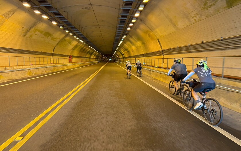 離開蘭陽平原,騎上東北角濱海公路。海風依舊,浪聲依舊,但心境已悄然不同。一路騎進舊草嶺隧道,燈光昏黃、微涼的空氣包圍著車隊,輪聲與呼吸聲在隧道中交織回響。從宜蘭到新北,穿越的不只是縣市界線,更像是從「旅程」走向「回憶」。