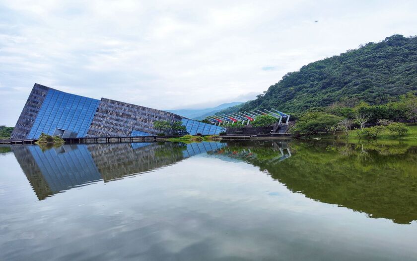 車隊首先來到烏石港與蘭陽博物館。以東北角單面山地形為設計語彙的建築,斜切入地景,與天空、水面相互映照。倒影如畫,靜謐而有力量。夥伴們在此駐足拍照,為這趟環島留下「台灣風景」。