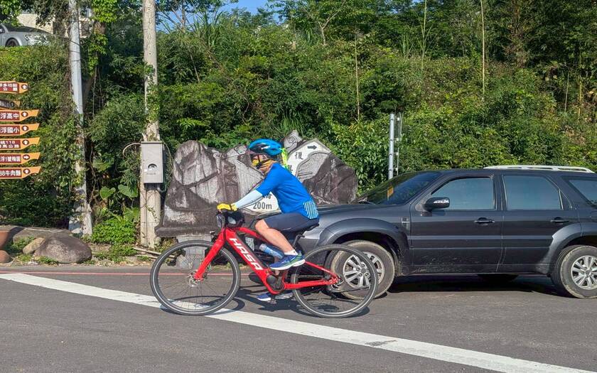 滑入羅浮、復興一帶,車隊在橋畔短暫停留,拍下第一張屬於北橫的合影。接著正式轉入台7線——這條橫貫山脈的經典路線,沒有華麗開場,卻用穩定的坡度與不斷延伸的山勢,慢慢拉開今天的序幕。氣溫升至29°C,但樹蔭濃密,風在林間流動,反而帶來一種恰到好處的涼意。