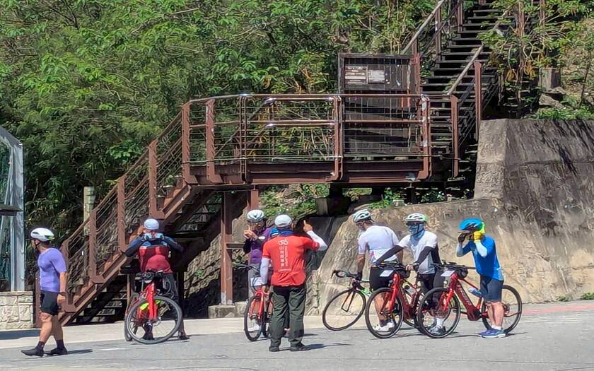 再往前,巴陵雙橋出現在視線之中——一紅一紫,跨越大漢溪谷,像兩條懸掛在山林之間的絲帶。新橋優雅、舊橋沉穩,交織出時間的層次。橋上風聲掠過,騎士們不約而同放慢速度,這不是單純的通過,而是一段需要細細感受的風景。