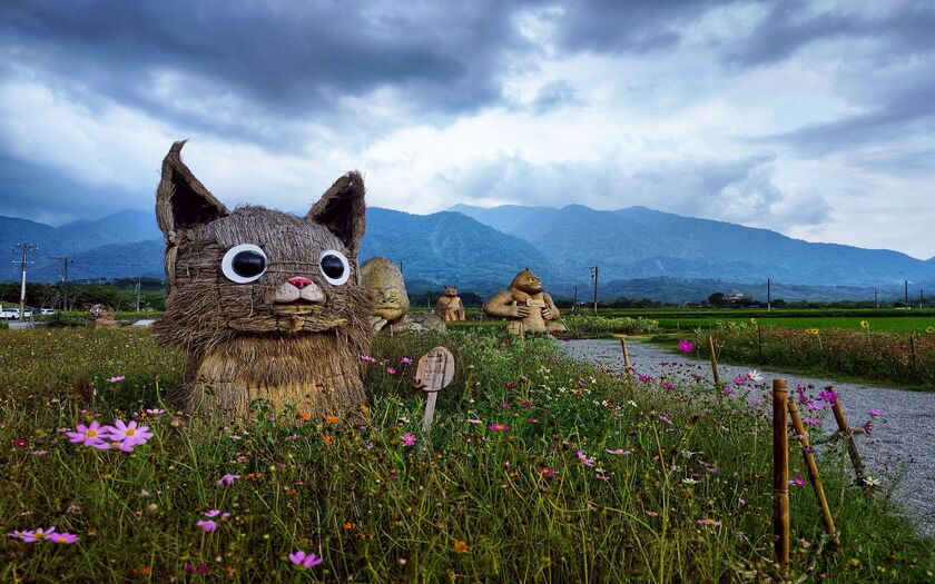 午後繼續南下,風景轉為開闊田野。來到富里稻草藝術景觀區,稻草不再只是農業副產物,而是轉化為一件件大型藝術作品。結合竹編技藝與里山精神,展現循環經濟與自然共生的理念,讓人看見農村創意的另一種可能。