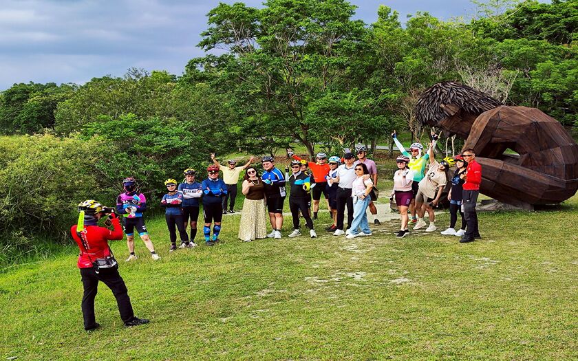 接近中午,行程進入今天的「高光時刻」。先是騎上舞鶴台地,來到北回歸線標誌公園。白色地標靜靜矗立,象徵著地球運行的軌跡。車隊在此完成一次具有象徵意義的跨越——從北半球熱帶與副熱帶的分界線之上騎行而過。